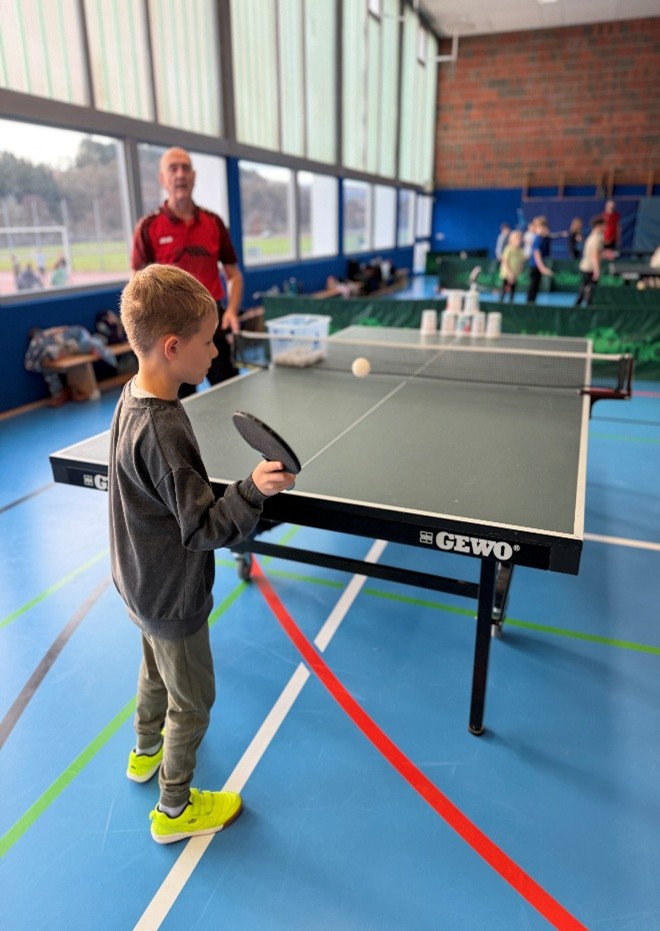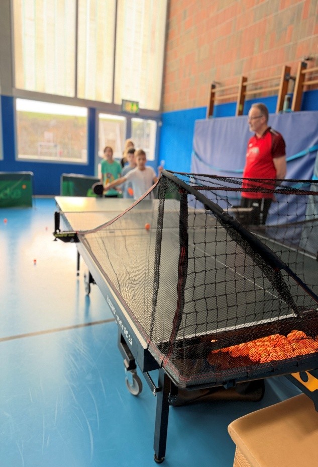 Vier Klassen nahmen an der Aktion teil und verwandelten die Turnhalle in eine lebendige Trainingsstätte. Unter fachkundiger Anleitung der Trainer des Vereins übten die Schülerinnen und Schüler erste Ballwechsel, probierten verschiedene Schlagtechniken aus und stellten ihr Geschick bei Koordinationsspielen unter Beweis. Neben Technik und Konzentration stand vor allem der Spaß an der Bewegung im Mittelpunkt.
